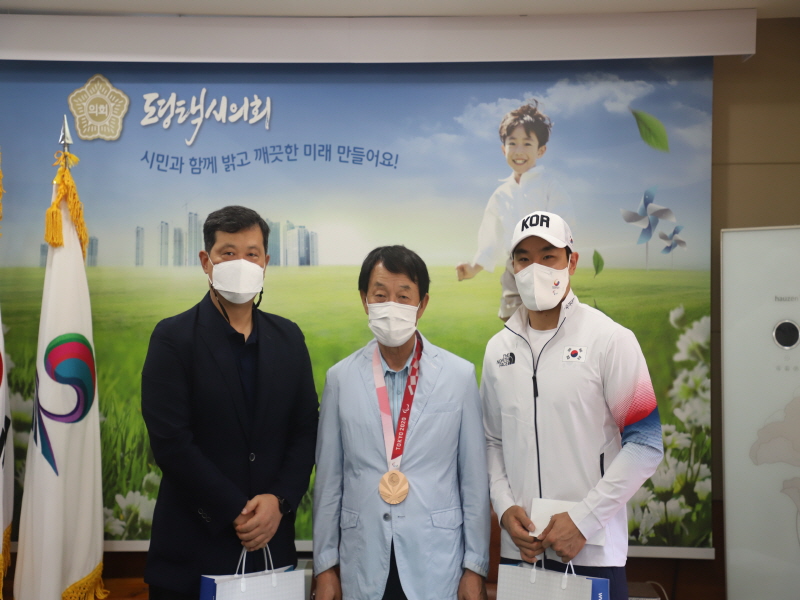 평택시의회 홍선의 의장은 3일 도쿄 패럴림픽 남자 유도 81kg급 동메달을 차지한 이정민 선수를 격려했다.