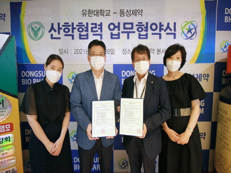 유한대학교(총장 김현중) 의료뷰티학과는 최근 동성제약(대표이사 이양구)과 의료뷰티 전문인력 양성을 위한 업무협약(MOU)을 체결했다.