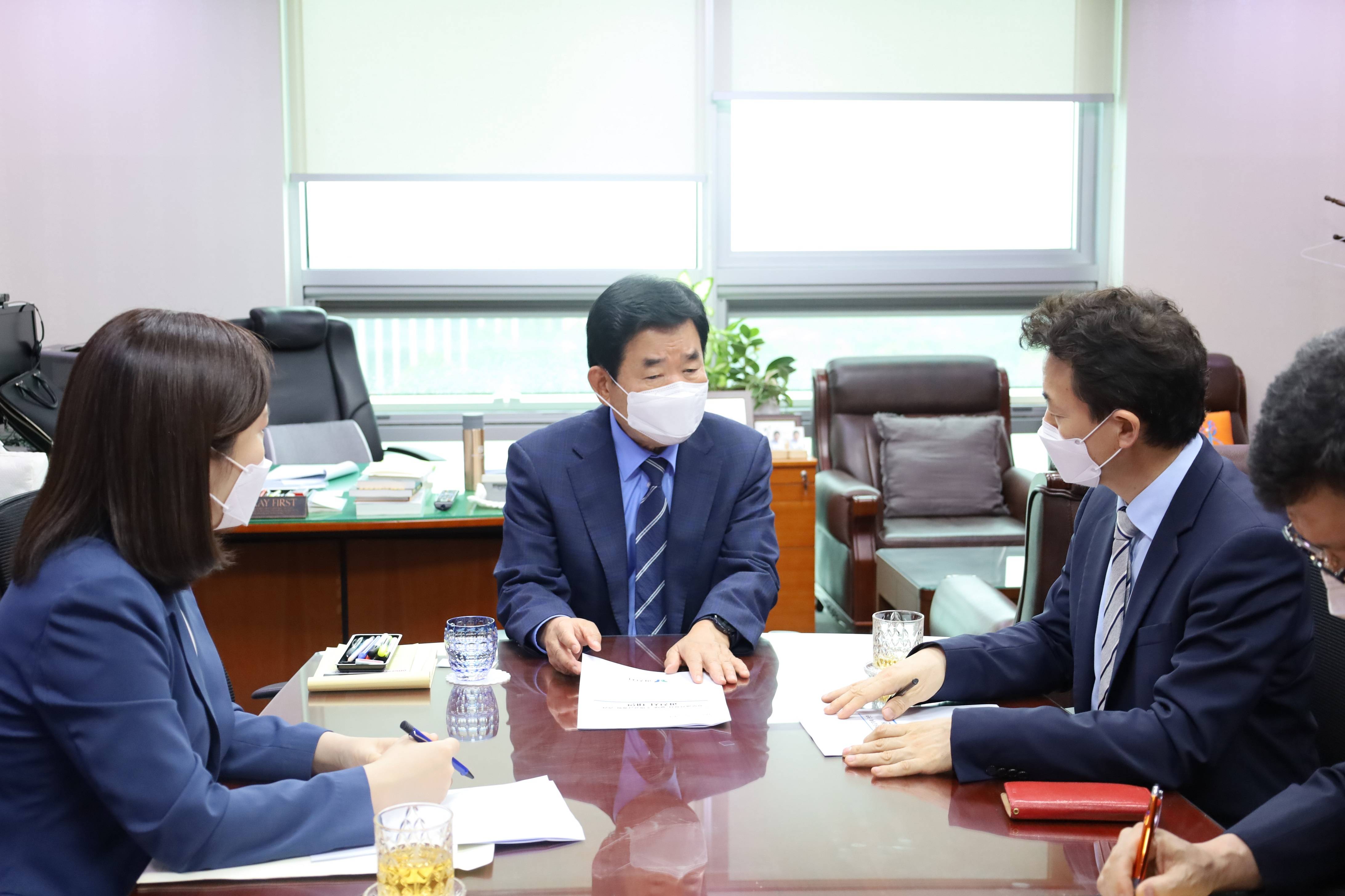 김종천 과천시장은 1714, 여의도 국회의원회관에서 김진표 더불어민주당 부동산특별위원회 위원장을 만나 청사일대 주택공급 문제해결을 위해 힘을 모아달라고 설득했다. 이날 김종천 시장과 김진표 위원장의 만남은 이소영 의원의 주선으로 이루어졌다.