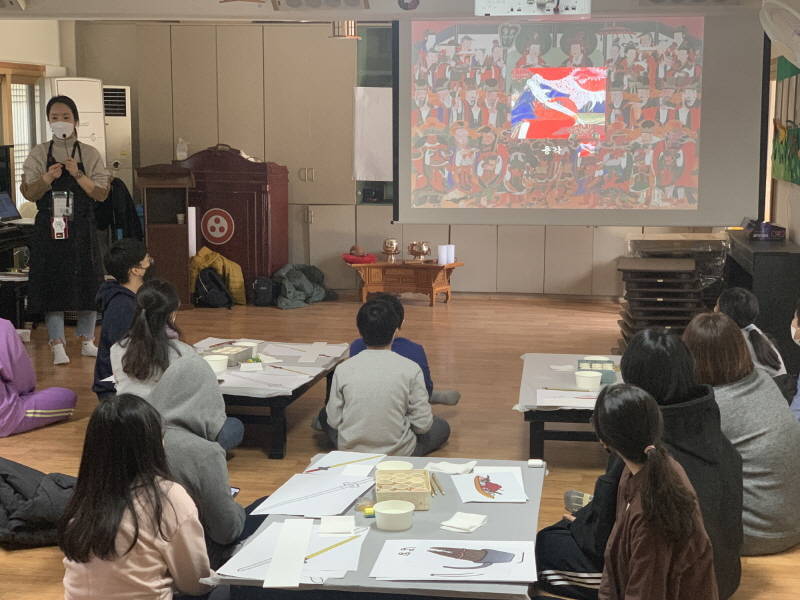 총 3개 프로그램으로 운영되며, 사찰문화유산을 활용한‘청계사 신중도에서 나의 아이템 찾기’가 지난 5일 올해 첫 프로그램으로 초등학교 고학년 20여명을 대상으로 진행됐다. 이날 프로그램은 경기도유형문화재 제274호로 지정된 청계사 신중도에 대한 강의를 시작으로 신중도에 그려진 지물 선택 그리기 체험과 작품 발표 등으로 구성됐다.