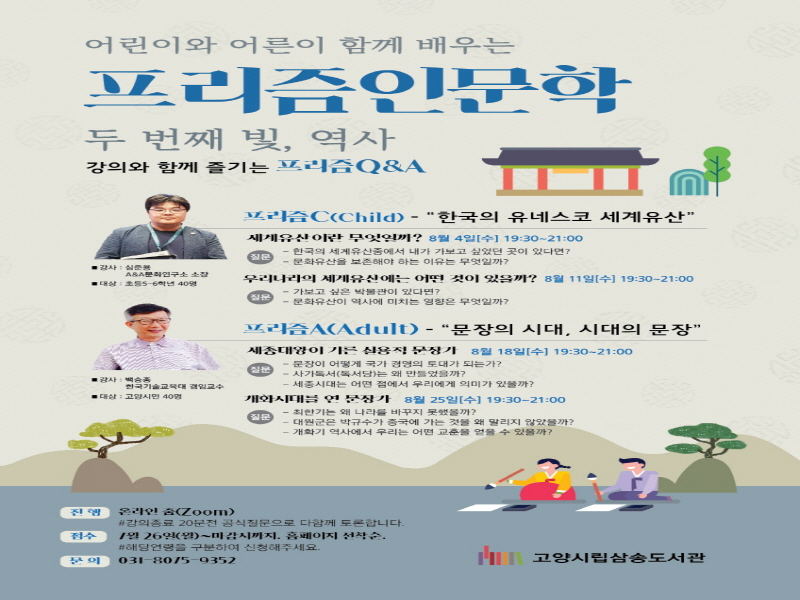 고양시(시장 이재준) 삼송도서관이 ‘어린이와 어른이 함께 배웁니다’라는 슬로건으로 시작한 프리즘 인문학이 두 번째 강의를 시작한다.