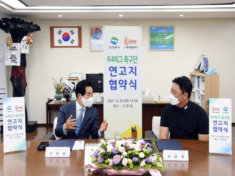 의정부시(시장 안병용)는 6월 22일 의정부시청에서 ㈜에이트데이(대표이사 허관혁)와 K4리그 축구단 연고지 협약을 체결했다.