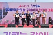 한방통신사 신유철기자 기자 | 충남도는 31일 논산 시민운동장에서 지체장애인의 권익신장과 화합을 다지는 ‘2025 충남지체장애인의 날 기념식 및 한마음대회’를 개최했다. 충남지체장애인협회가 주최하고 충남지체장애인협회 논산시지회(지회장 손병복)가 주관한 기념식에는 김태흠 지사를 비롯해 백성현 논산시장, 이건휘 (사)한국지체장애인협회충남협회장, 손병복 충남협회 논산시지회장, 도민 등 2500여 명이 참석해 자리를 빛냈다. 행사는 축하공연을 시작으로 유공자 표창 및 감사패 수여, 전동보장구 및 지정기탁금전달, 기념사 및 축사 등 순으로 진행됐다. 표창 및 감사패는 장애인의 권익신장과 지역사회의 복지증진에 기여한 17명이 도지사, 도의회의장, 교육감, 경찰청장 표창 등을 수상했다. 김 지사는 유공자들에게 표창장을 직접 수여한 뒤 기념사를 통해 “장애인의 생활이 비장애인과 차이가 없을수록 선진국이라고 생각한다”며 “장애인과 비장애인 구분 없이 어우러져 살아갈 수 있도록 전국 최고의 장애인 친화도시 충남을 만들어 나가겠다”고 강조했다. 한편, ‘지체장애인의 날’은 (사)한국지체장애인협회가 매년