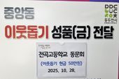 한방통신사 신유철기자 기자 | 동두천시청 전곡고등학교 동문회는 지난 28일, 지역 내 어려운 이웃을 돕기 위해 성금 50만 원을 중앙동 행정복지센터에 기탁했다. 전곡고등학교 동문회는 2022년부터 매년 복지 취약계층을 위한 성금을 꾸준히 전달하며 지역사회 나눔 문화 확산에 앞장서고 있다. 이날 전달된 성금은 사회복지공동모금회와 중앙동 지역사회보장협의체를 통해 관내 복지사각지대에 놓인 위기가구를 지원하는 데 사용될 예정이다. 최현규 회장은“작은 정성이지만 지역사회에 보탬이 되길 바라며, 앞으로도 공직자로서 따뜻하고 행복한 지역공동체를 만들기 위해 지속적인 나눔 활동을 이어가겠다”라고 말했다. 양웅식 중앙동장은“이웃사랑을 실천해 주신 전곡고등학교 동문회 회원 여러분께 감사드리며, 소외된 이웃들에게 소중한 성금이 잘 전달될 수 있도록 최선을 다하겠다”라고 전했다. [뉴스출처 : 경기도 동두천시]