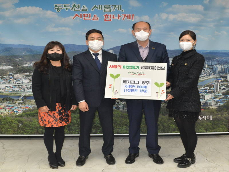 ㈜메가파크는 지난 11일, 동두천시 지역아동센터 및 취약계층 아동들을 위해 1,000만원 상당의 시설 이용권을 전달했다.