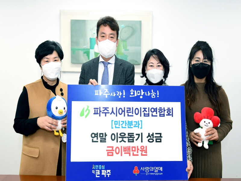 이재면 보육청소년과장은 “어려운 이웃을 위해 뜻을 모아 주신 어린이집연합회 민간분과에 감사한 마음을 전하며, 파주시 보육현장에서 항상 애써주시고 우리 아이들의 귀감이 되어 주셔서 감사드린다”고 전했다.