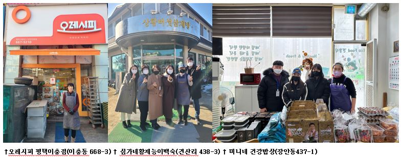 ○ 장애 당사자 가정을 대상으로 지역사회 내 후원업체인 오레시피 이충점(평택시 이충동 소재)와 심가네황제능이백숙(평택시 진위면 소재)에서 주 1회, 미니네 건강밥상(평택시 장안동 소재)에서 월 2회 서비스를 제공하고 있으며, 오레시피 이충점, 심가네황제능이백숙, 미니네 건강밥상(행복드림봉사단)에서는 2022년 한 해 동안 지역사회 내 이웃사랑 실천을 위해 반찬을 지원해주고 있다.