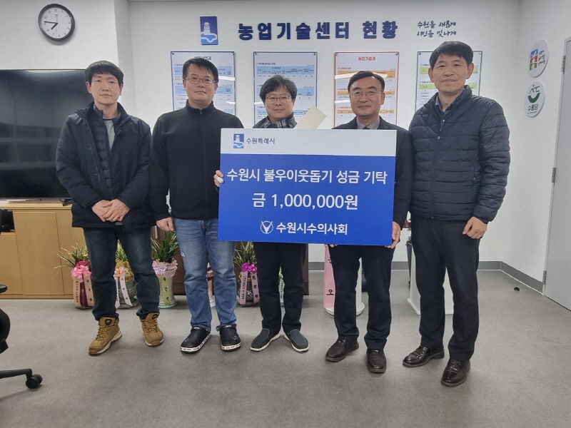 수원시 수의사회가 “수원시 취약계층 시민 지원에 사용해 달라”며 수원시에 100만 원을 기탁했다.