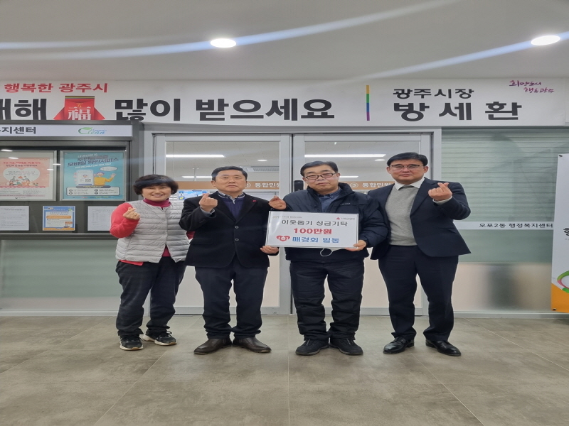 광주시 매산동에 소재한 기업인 모임 매경회 최호철 회장은 지난 5일 오포2동 행정복지센터를 방문해 성금 100만원을 기탁했다.