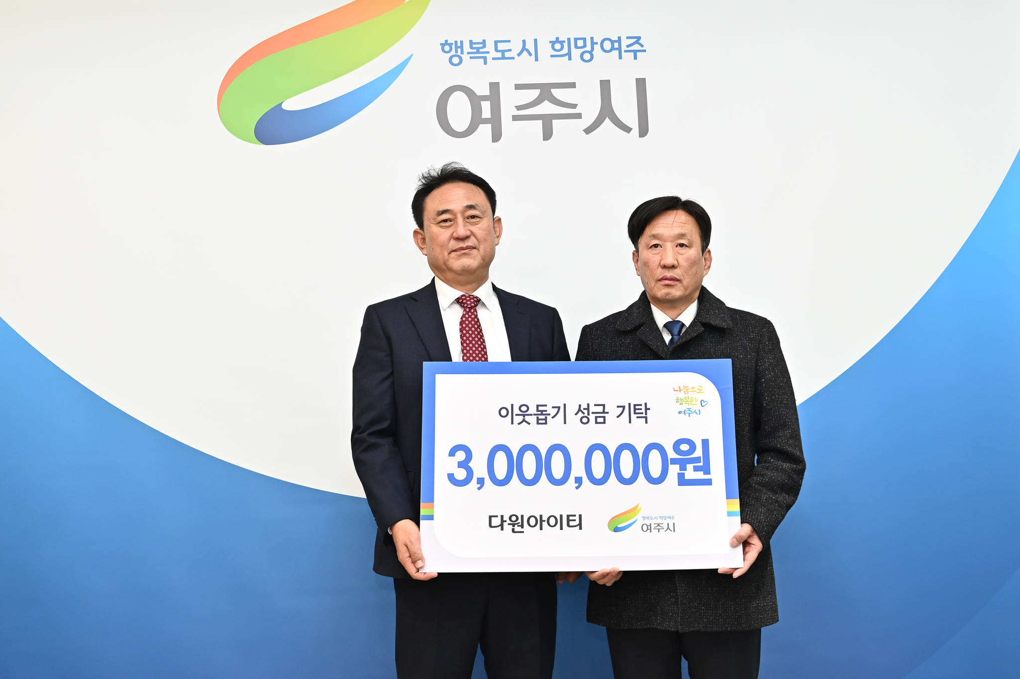 다원아이티(대표 신상근)에서 지난 1월 5일 여주시(시장 이충우)에 성금 300만원을 기탁하였다.