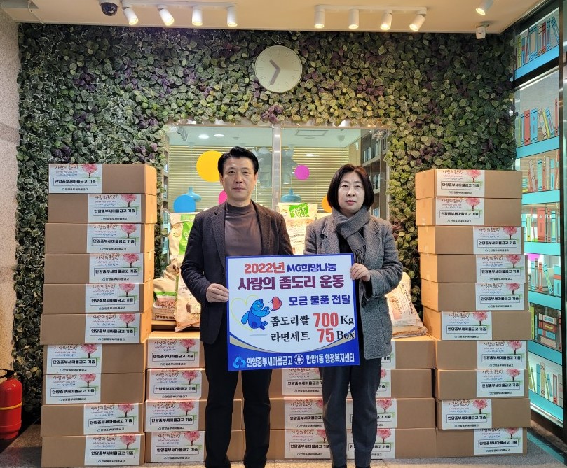 식량이 부족하던 시절에도 끼니마다 한 숟가락씩 좀도리(쌀독)에 쌀을 모아 어려운 이웃을 위해 베풀었던 나눔의 풍습을 배우고자 안양중부새마을금고에서는 십시일반의 정신으로 매년 사회공헌 캠페인을 진행 중이다. 작년에도 140여 명의 개인 및 단체 회원들이 사랑의 좀도리 운동에 동참했으며, 정성껏 모은 성품을 안양시에 기탁해 취약계층에 전달할 예정이다.
