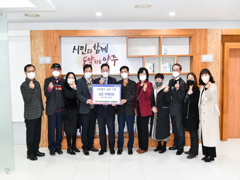 강수현 시장은 “어려운 이웃들이 따뜻한 새해를 보낼 수 있도록 성금을 잘 전달하겠다”며 양주시BIO농업대학 총동문회에 감사함을 전했다.