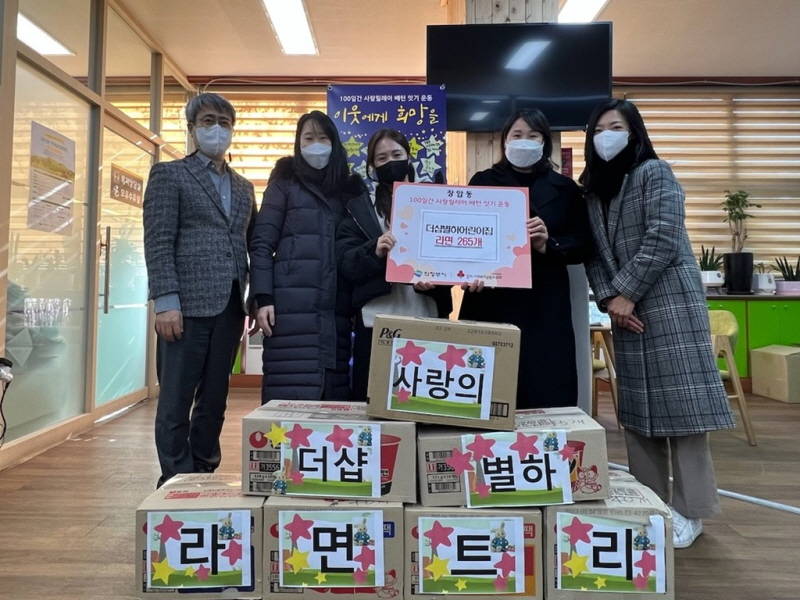 기증된 라면은 더샵별하어린이집 원생들이 장암동의 어려운 이웃들을 위해 십시일반 모은 것으로, 원생들의 따뜻한 마음이 담긴 것이다.