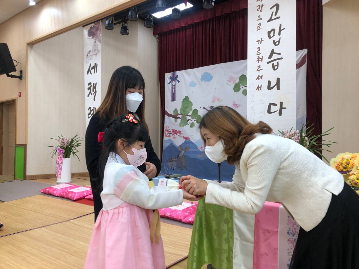 만 5세반 박연경 교사는 “선생님께 절하며 예를 표하고 스승의 은혜에 감사함을 느끼는 시간이었고, 부모님과 꽃을 띄우는 부화예식을 통해 나를 사랑하고 배려하는 마음, 전통예절 등을 익힐 수 있는 졸업식”이라고 말했다.