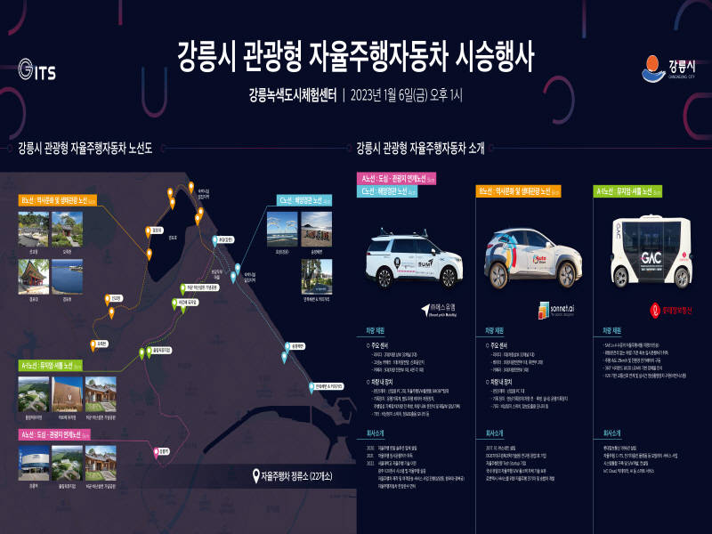 한편, 강릉시는 지난해 6월 24일 국토교통부로부터 『자율주행 자동차 상용화 촉진 및 지원에 관한 법률』에 따라 ‘자율주행 자동차 시범운행지구’로 지정받았다.
