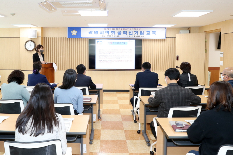 교육은 박인혜 광명시 선거관리위원회 선거담당관이 강사로 나서 기부행위 제한과 선거 관련 제한사항 등 공직선거법 주요 내용에 대해 교육했다.