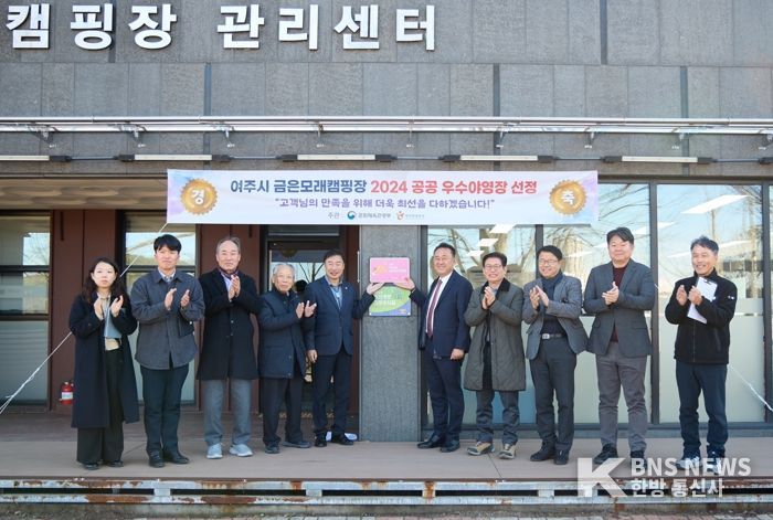 한방통신사 신유철기자 기자 | 여주도시공사는 자사가 운영 중인 금은모래캠핑장이 문화체육관광부와 한국관광공사에서 주관한 2024년 우수 공공야영장으로 최종 선정되어 2024년 12월 6일 현판식을 개최했다고 밝혔다.