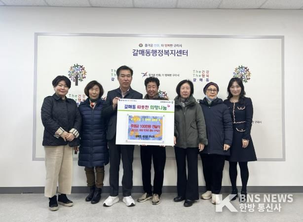 한방통신사 신유철기자 기자 | 구리시 갈매동행정복지센터는 12월 6일 갈매동 새마을 부녀회로부터 후원금 100만 원을 전달받았다고 밝혔다.