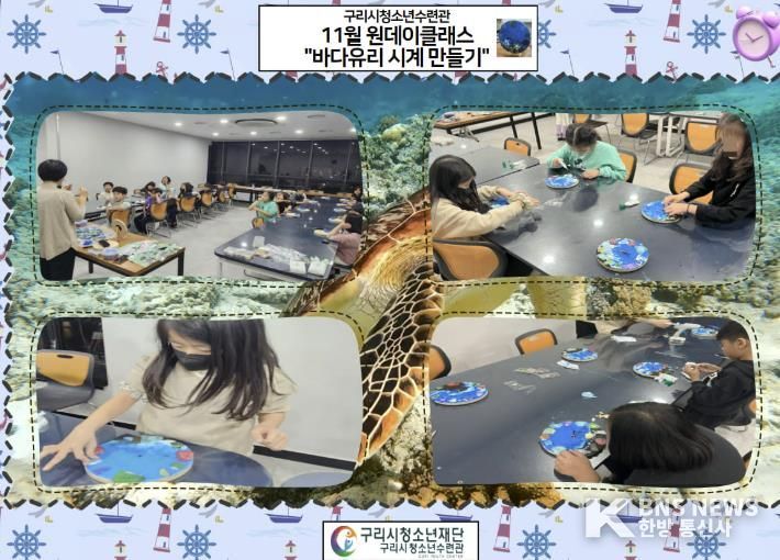 이번 활동은 구리시 초등학교 1학년부터 4학년 어린이들을 대상으로 자연의 힘으로 깎이고 다듬어진 유리조각인 바다유리(Sea Glass)를 이용하여 자신만의 독특한 시계를 만드는 내용으로 진행됐다.