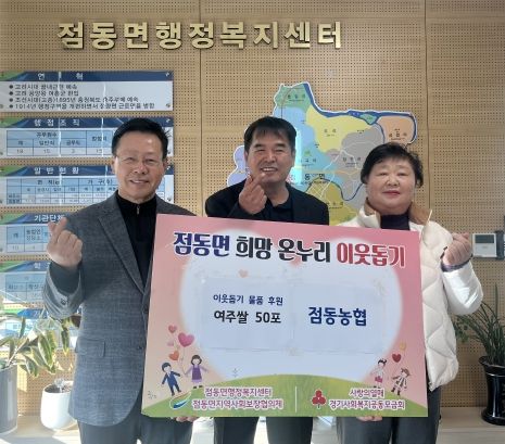 점동면장 이재성은 “점동농협의 따뜻한 기부에 깊은 감사를 드린다. 점동농협의 기탁으로 지역주민들에게 따뜻한 마음을 전할 수 있게 됐다. 기탁해주신 쌀은 점동의 어려운 이웃들에게 전달하여 따뜻한 점동을 만들어 나가겠다.” 라고 전했다.