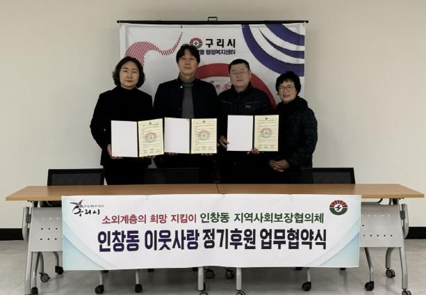 한방통신사 신유철기자 기자 | 구리시 인창동행정복지센터는 12월 11일 인창동지역사회보장협의체와 명륜진사갈비 구리인창점 간의 ‘인창동 이웃사랑 정기후원’ 업무협약식을 가졌다고 밝혔다.
