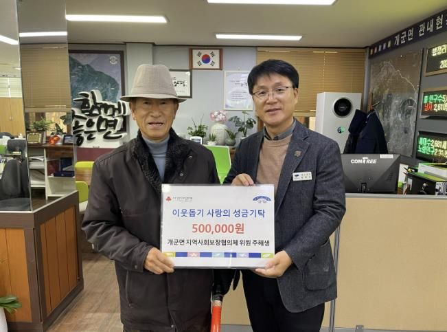 9일 개군면 지역사회보장협의체에서도 온정을 전했다. 주해생 위원이 50만 원을 기부하며 어렵고 힘든 경제 상황에서도 따뜻한 손길을 건네며 이웃들에게 큰힘이 돼주었다.