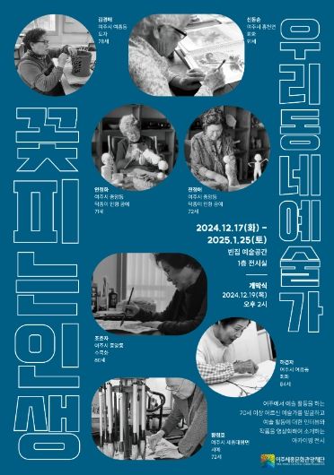 전시 개막식은 12월 19일 오후 2시에 개최할 예정이며, 어르신 예술가의 전시 해설과 관람객들이 함께 소통하고 교감할 수 있는 자리를 준비했다.