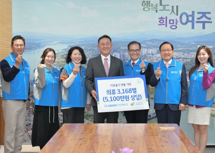 한방통신사 신유철기자 기자 | (사)한국UN봉사단이 여주시 세종대왕면에 소재한 아동양육시설 상생복지회 우리집을 방문하여 김장 김치와 쌀을 후원하고, 어려운 이웃을 위한 이웃돕기 현물 여성 의류 3,200여벌(5,100만원 상당)을 여주시에 기탁했다.