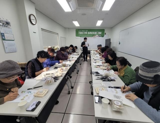 치매환자를 돌보는 가족 자조모임은 지난 1년을 되돌아보고, 간병으로 지친 가족들이 치매라는 공통의 관심사를 함께 공유하며 서로 격려와 희망을 나누는 동아리로, 한지 무드등을 만드는 이번 힐링 프로그램을 통해 따뜻한 자기돌봄의 시간을 가지며 한 해를 마무리했다.