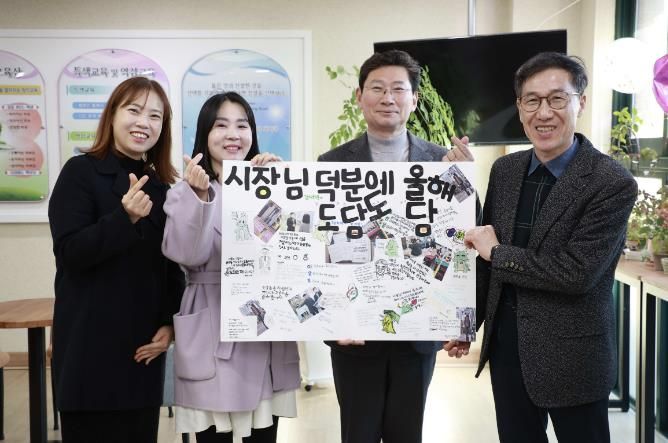 이 시장은 4학년 학생들이 수업 중인 교실을 깜짝 방문해 꿈을 응원하고 격려의 덕담을 한 뒤 함께 사진을 찍기도 했다.