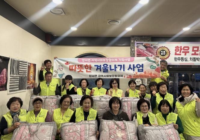 한방통신사 신유철기자 기자 | 양평군 양서면 지역사회보장협의체는 23일 저소득층 지원사업의 일환으로 ‘따뜻한 겨울나기’ 사업을 기획, 관내 홀몸어르신 등 30가구에 겨울 이불을 지원했다.