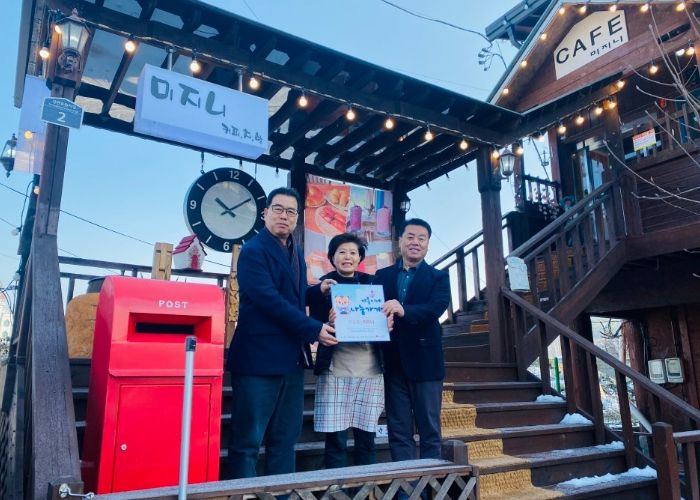한방통신사 신유철기자 기자 | 지난 26일 여흥동 소재 카페 미지니가 지역사회와 상생하는 ‘여흥이네 나눔가게’에 동참했다. 이에 여흥동행정복지센터와 여흥동지역사회보장협의체는 ‘카페 미지니’를 여흥이네 나눔가게 17호점으로 선정하고 현판식을 가졌다.