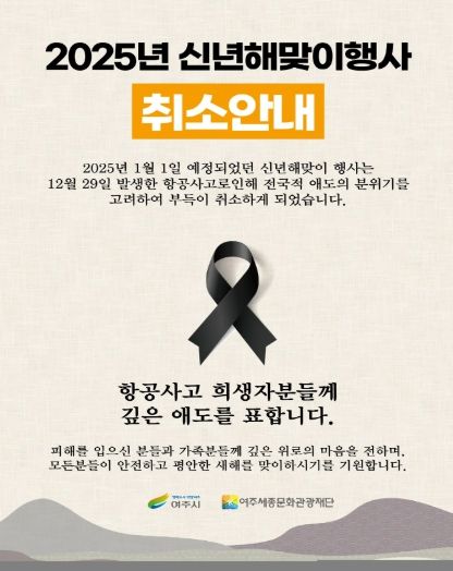 여주시 이충우 시장은 “이번 항공기 사고 희생자와 유가족분들에게 깊은 애도와 위로의 말씀을 드린다”며 조의를 표했다.