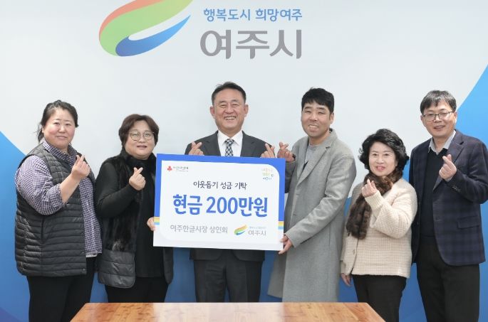 이날 성금은 여주한글시장 상인회가 2024 여주오곡나루축제 행사부스 운영, 여주프리미엄아울렛 특별야외행사장에서 여주쌀떡볶이, 여주쌀 등을 판매한 수익금으로 마련됐다.