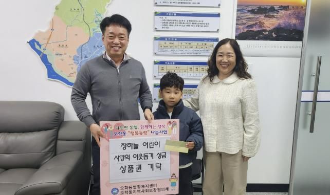 오학동 행정복지센터에서 진행된 기탁식에서 장하늘 학생은 “매달 받은 용돈을 조금씩 모아왔다”며 “추운 겨울을 보내고 계신 어려운 이웃들에게 조금이나마 도움이 됐으면 좋겠다”라고 전했다.