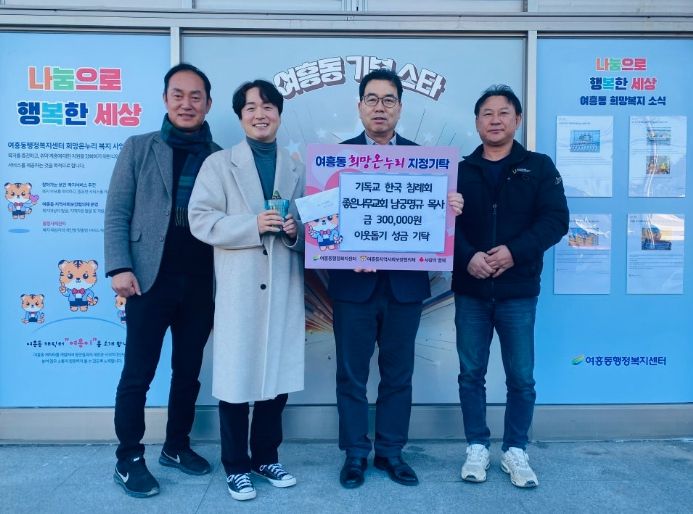 한방통신사 신유철기자 기자 | 지난 3일 여흥동 소재 좋은나무교회 남궁명류 목사는 여흥동 내 청소년 위기가구를 위한 30만원을 여흥동행정복지센터에 기탁했다.