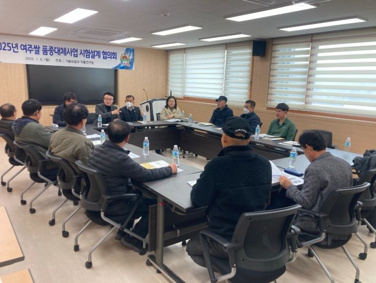 한방통신사 신유철기자 기자 | 여주시는 여주쌀 품종대체사업 시험설계협의회를 지난 1월 6일 개최했다고 밝혔다. 이번 협의회는 여주시농촌지도자연합회와 여주시쌀연구회 임원 10명, 관계자들이 참석해 2024년 성과를 공유하고, 2025년 시험설계를 통한 성공적인 품종개발에 박차를 가하기 위해 마련됐다.