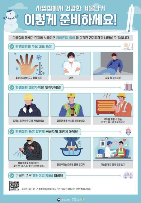 아울러 한파 특보가 발령 시 각 사업장의 옥외작업 근무시간을 조정하도록 권고하고, 사고사례와 안전 수칙을 수시로 전파하여 안전사고에 대한 경각심을 높이는 등 겨울철 사고 예방에 전력을 다한다는 계획이다.