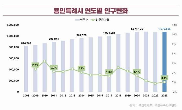 시는 2023년 말 기준 행정안전부의 주민등록 인구현황과 통계청의 인구주택총조사, 용인시 사회조사(2024) 등 각 분야별 통계자료를 시의 실정에 맞게 분석, 인구변화 추이나 생애주기별 사회 통계 등을 담아 이번 보고서를 펴냈다.