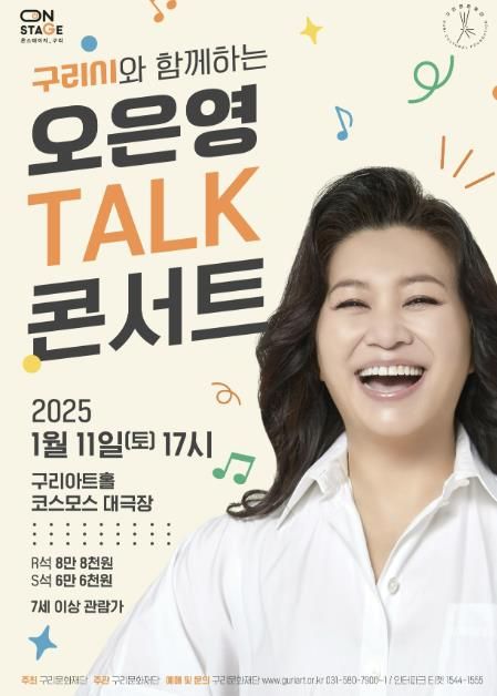 한방통신사 신유철기자 기자 | 구리문화재단은 1월 11일 오후 5시 구리아트홀 코스모스 대극장에서 2025년 새해 첫 번째 기획공연으로 구리시와 함께하는 '오은영 토크 콘서트'를 개최한다고 밝혔다.