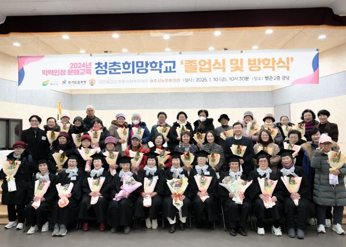 한방통신사 신유철기자 기자 | 여주시노인복지관은 지난 1월 10일 여주시 노인복지관 별관 2층 강당에서 2024년 학력 인정 문해교육 프로그램 ‘청춘 희망학교’의 졸업식 및 방학식을 성황리에 개최했다. 이번 행사에는 학습자 40명을 포함해 졸업생, 가족, 시민 등 총 50여 명이 참석해 졸업생들의 성취를 축하했다.