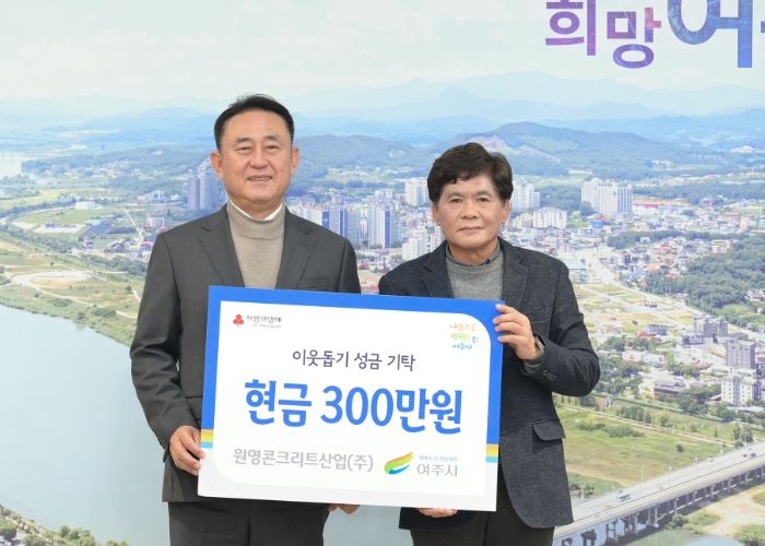 한방통신사 신유철기자 기자 | 원영콘크리트산업은 지난 1월 8일 여주시를 방문하여 관내 어려운 이웃을 위한 이웃돕기 성금 300만원을 기탁했다.