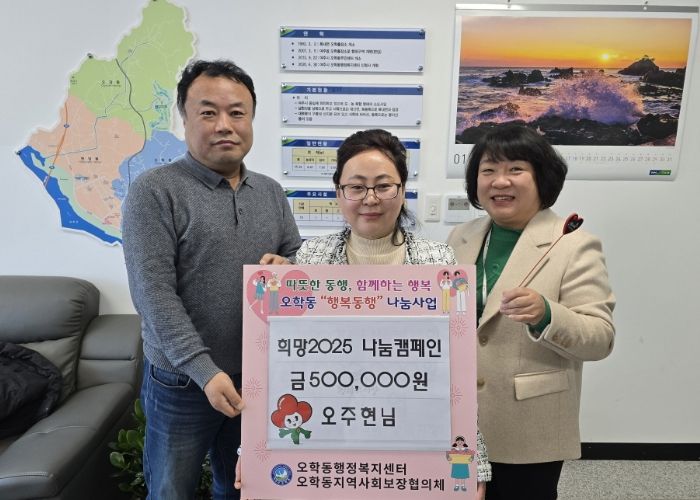 오학동 행정복지센터는 이번 기부를 계기로 '희망2025 나눔캠페인'을 더욱 활발히 진행할 계획이라고 덧붙였다