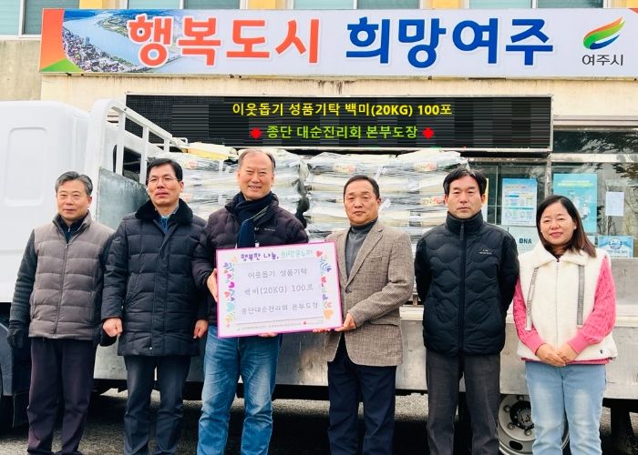 한방통신사 신유철기자 기자 | 종단 대순진리회 여주본부도장(여주시 강천면 소재)는 지난 13일 다가오는 설 명절을 맞이하여 관내 소외계층을 위해 강천면에 여주쌀 20kg 100포를 기탁했다.