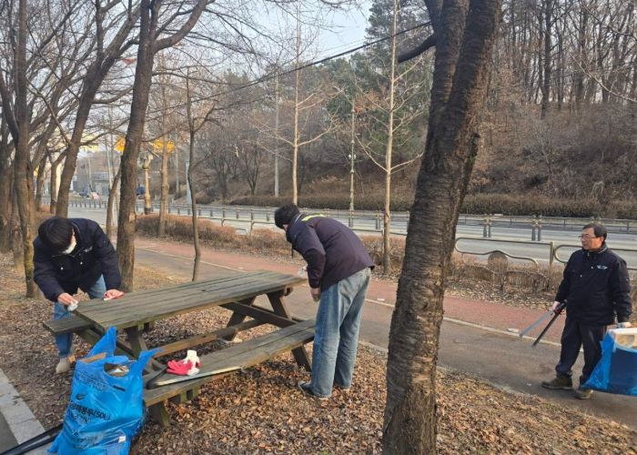 이번 설맞이 대청소는 2025. 1. 22. 실시했으며, 산림공원과 직원과 소속 근로자 등이 참여하여 공원 및 걷고싶은거리 등 나무와 나무 사이 및 외곽의 사람 손이 잘 닿지 않는 곳까지 버려진 쓰레기를 수거했고, 운동기구, 정자, 벤치 등 주요 이용시설물을 정비하여 귀성객들이 편안한 마음으로 깨끗한 공원 및 걷고 싶은거리 등을 이용하며 즐거운 설 명절을 보내기를 바라는 마음으로 대청소를 실시했다.