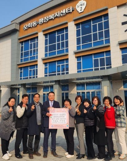 김병선 오학동장은 "이광술 대표님의 꾸준한 나눔 활동이 우리 지역사회에 큰 힘이 되고 있다."라며 "기탁해 주신 성금은 관내 저소득층을 위해 소중히 사용하겠다."라고 감사의 뜻을 전했다.