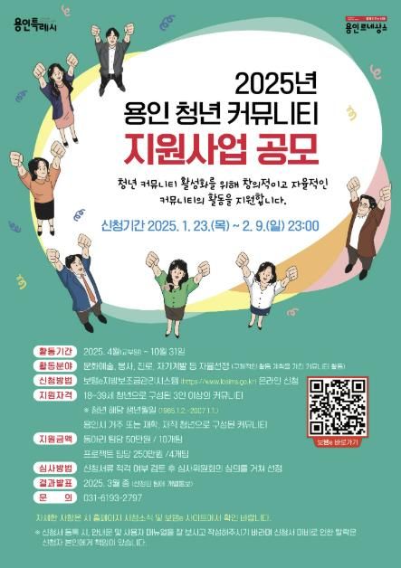 시는 3월 중 지원 대상 팀을 최종 선정해 발표할 예정이며, 자세한 내용은 용인시 홈페이지, 용인청년포털(청년e랑), 보탬e 사이트에서 확인할 수 있다.