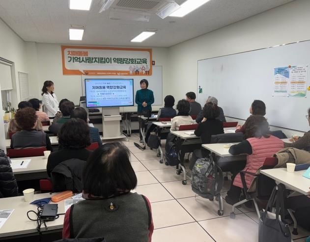 이번 교육은 ▲치매에 대한 이해 ▲치매안심센터 사업의 이해 ▲치매 환자 돌봄 10대 원칙 ▲기억사랑지킴이 사업 안내 ▲노인 인권 교육 등 치매 관련 최신 동향을 다루는 교육과 함께 ▲두근두근 뇌 운동, 인지 강화 프로그램 ▲신체·인지 자극 뇌신경 체조 ▲인지 회상 활동 교육 ▲전통놀이 및 보드게임 ▲관절 건강 및 낙상 예방 운동 등 다양한 인지 강화 전문 프로그램으로 구성됐다.