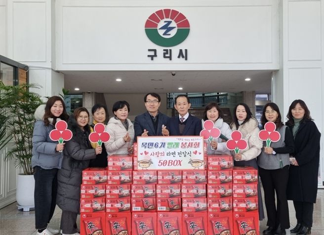 한방통신사 신유철기자 기자 | 구리시는 다가오는 설 명절을 맞아 지난 24일 목민 6기 봉사회로부터 지역 내 취약계층을 위해 라면 50박스를 전달받았다고 밝혔다.
