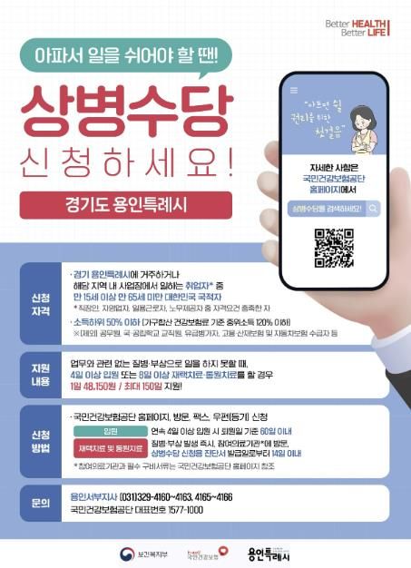 용인특례시에 거주하며 상병수당을 받은 한 시민은 "갑작스러운 허리 디스크로 6개월 동안 일을 하지 못해 생활비 부담이 컸고 우울증까지 찾아왔는데, 상병수당 지원을 받을 수 있어 정말 많은 도움이 됐다"며 "더 많은 사람이 이 제도를 알고 활용했으면 좋겠다“고 말했다.